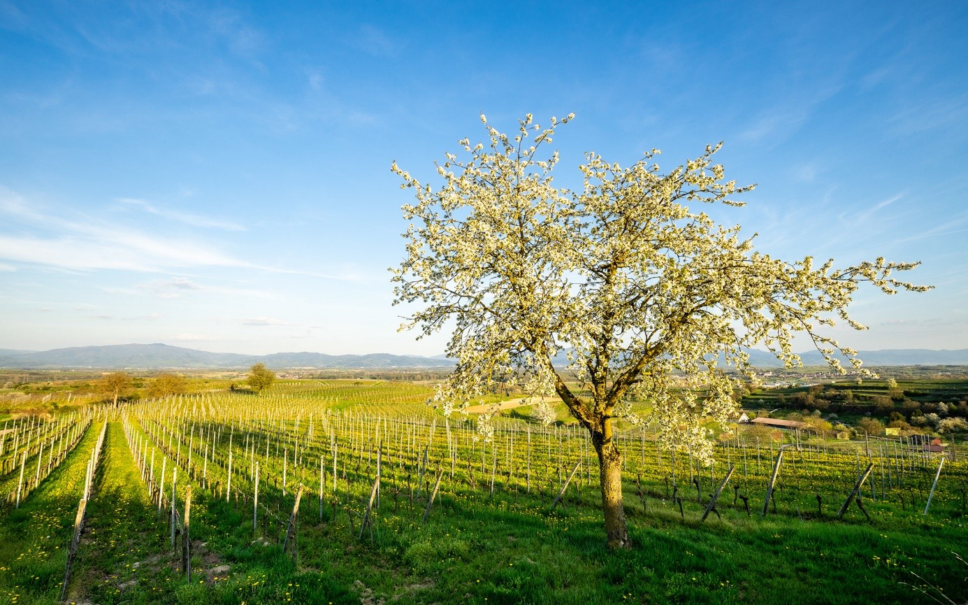 Landschaftsbild in die Rebberge im Frühling