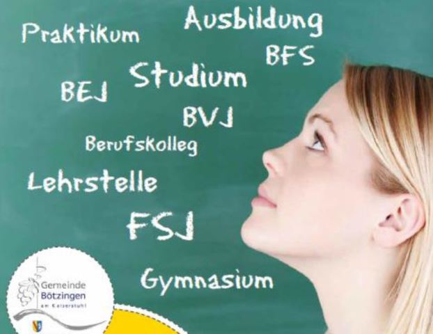 In der Ausbildungsbroschüre befindet sich eine Auflistung von 28 Ausbildungsbetrieben aus Bötzingen und der nahen Umgebung, welche insgesamt über 60 Ausbildungsplätze anbieten. Nachfolgend finden Sie zudem eine Übersicht, welche Bötzinger Betriebe aktuell Ausbildungsplätze anbieten.