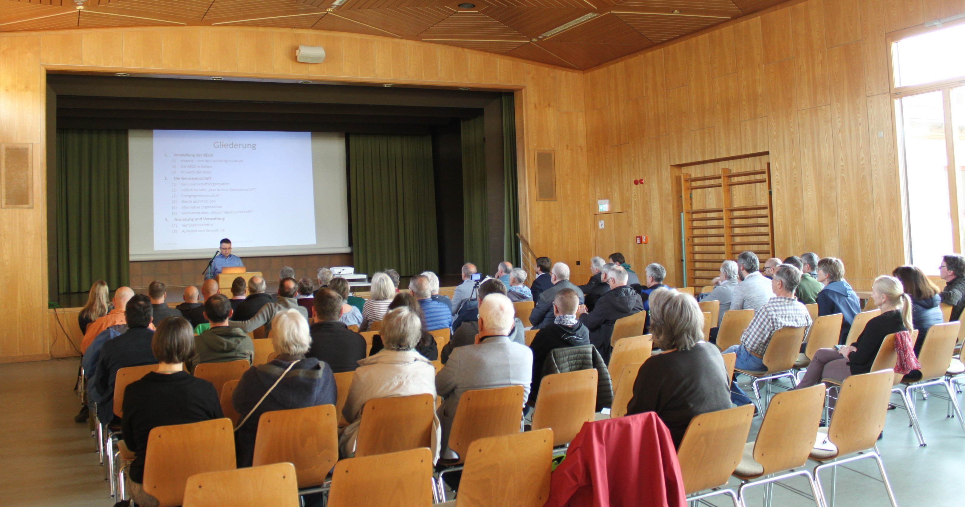 Beim ersten Vortrag veranschaulichte Isabella Goletzko, Geschäftsführerin des fesa e.V., wieso eine Energiewende notwendig ist und welche Herausforderungen aber auch Potentiale zur Nutzung erneuerbarer Energien in der Gemeinde Bötzingen bestehen. Im zweiten Vortrag berichtete Florian Müller, Geschäftsführer der Stadtwerke Müllheim Staufen GmbH, wie Bürger mit Hilfe von Energiegenossenschaften aktiv an der Energiewende mitwirken können und welche Vorteile dies mit sich bringt. Anschließend stellte Markus Bohnert, stellvertretender Bürgermeister der Gemeinde St. Peter vor, wie die Bürgerenergiegenossenschaft in St. Peter zur lokalen Wärmewende beigetragen hat.