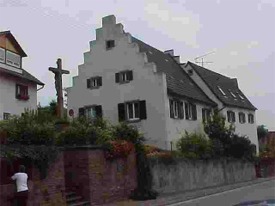Staffelgiebelhaus mit dem Lindenplatz im Vordergrund. In den Giebeln integrierte Stufen ("Staffeln") gaben dem Haus seinen Namen. Es wurde im Jahr 1605 erbaut und mehrmals umgebaut. Auf dem Lindenplatz stand der ursprünglich älteste Baum der Gemeinde. Der Lindenbaum wurde im Jahr 1870 gepflanzt und musste im Jahr 1996 aus Sicherheitsgründen durch eine Neupflanzung ersetzt werden.