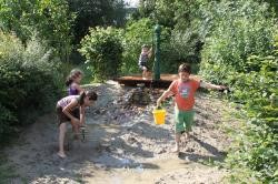 Eine besondere Attraktion für Kinder ist der auf dem Spielplatz im Grün neu eingerichtete Wasser-Matsch-Bereich, der den jüngeren Wanderern das Element Wasser auf kindgerechte Art und Weise nahe bringen möchte.